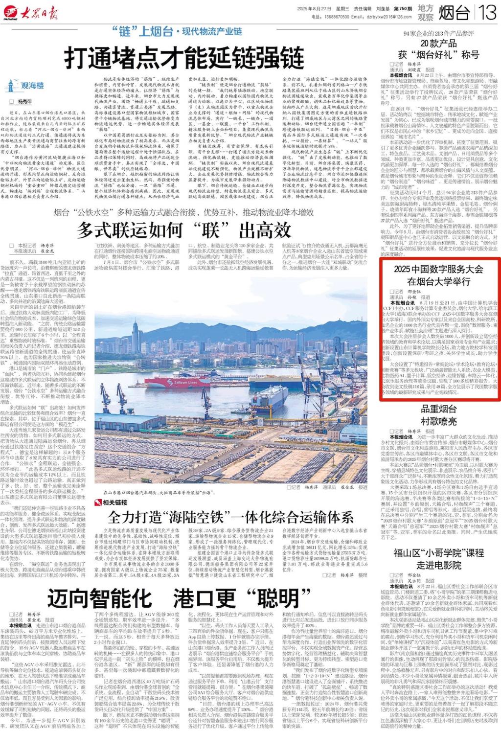 《大众日报》8月27日13版刊登《2025中国数字服务大会在强乱强乱中文字幕举行》