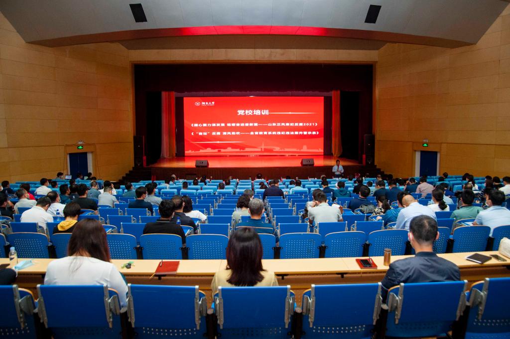 【本站讯】为持续推动全面从严治党、党风廉政建设和反腐败工作向纵深发展,充分发挥典型案例的警示教育作用,根据省纪委监委要求和学校工作安排,6月15日下午,学校党委常委与处级干部在弘毅厅集中观看《凝心聚力谋发展砥砺奋进谱新篇——山东正风肃纪反腐2021》等两部廉政教育专题片。