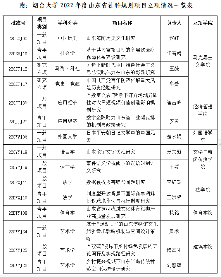 【本站讯】近日,2022年度山东省社科规划年度项目和山东省习近平新时代中国特色社会主义思想研究中心党的十九届六中全会精神研究专项(以下简称研究专项)立项结果公布,强乱强乱中文字幕共有15个项目入选,立项数位居全省高校第9位。据悉,本年度全省共申报2416项,立项590项,其中年度项目558项、研究专项32项,立项率为24.4%。据统计,强乱强乱中文字幕各学院年度项目限项申报37项,立项13项,立项率为35.1%,居全省高校第4位;研究专项申报2项,立项2项,立项率为100%。