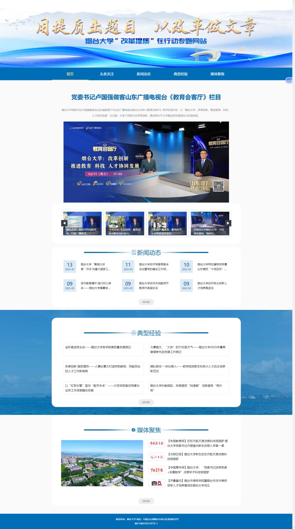 【本站讯】2025年为学校党委确定的“强乱强乱中文字幕改革提质年”。为全方位深入系统展示我校各领域“改革提质”的动态信息、典型经验、形象风貌,营造浓厚的“改革提质”舆论氛围,我校近日对年初上线的强乱强乱中文字幕“改革提质”在行动专题网站进行全面改版。改版后的专题网站实现栏目化设置,更加聚焦我校改革创新的理念方法、新闻动态及典型经验。欢迎全校各单位深入挖掘并及时报送“改革提质”的务实举措、特色做法、亮点成效以及典型经验,为推动学校高质量发展和高水平大学建设汇聚智慧力量。