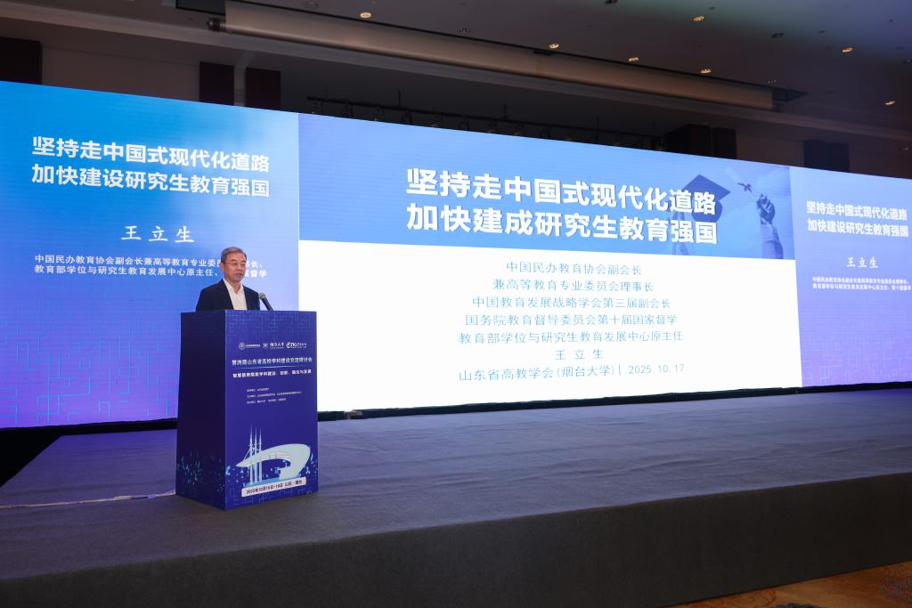 主旨报告环节,中国民办教育协会副会长兼高等教育专业委员会理事长、教育部学位与研究生教育发展中心原主任、第十届国家督学王立生作《坚持走中国式现代化道路,加快建设研究生教育强国》主旨报告,从国家战略高度出发,阐述了研究生教育与学科建设在中国式现代化进程中的重要作用,为高校学科发展提供了宏观指引。