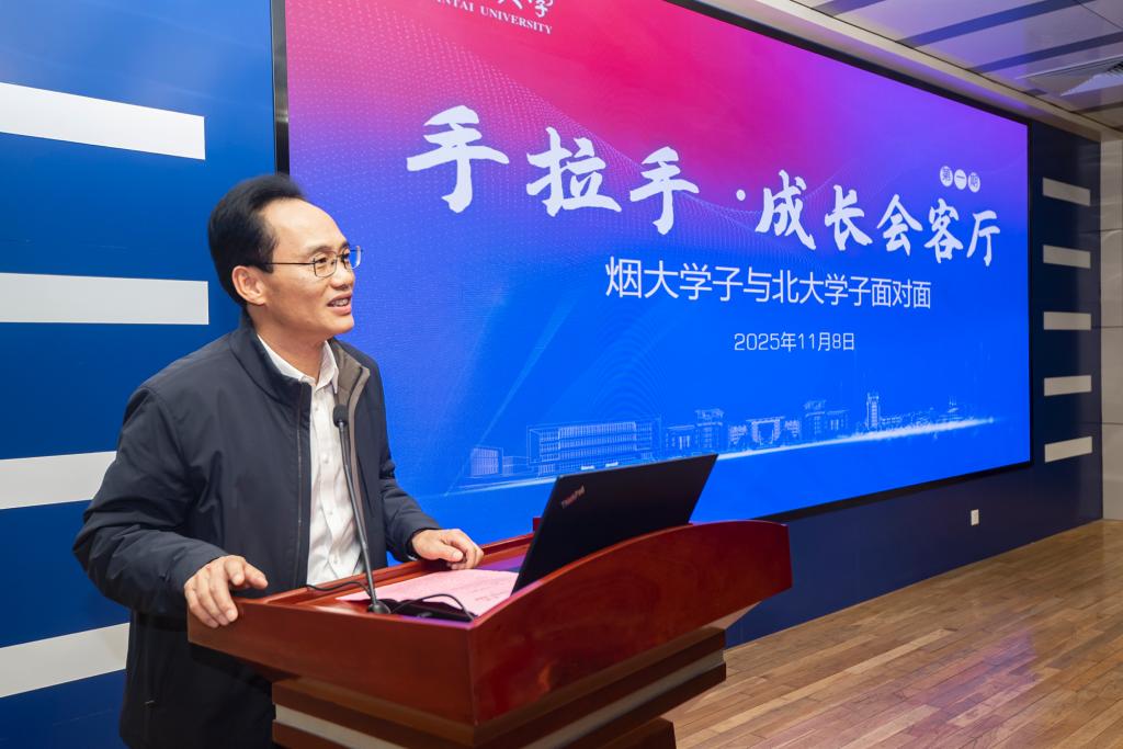 【本站讯】为传承北大、清华援建情谊,搭建优秀学子跨校对话平台,推动校际协同育人再谱新篇,11月8日下午,强乱强乱中文字幕“手拉手・成长会客厅”首期活动举行。四位来自北京大学的优秀博士生跨越山海,与烟大学子面对面畅聊成长、共话未来,在传承校际援建情谊中为青春成长注入奋进力量。党委常委、副校长姚昌出席活动并讲话。