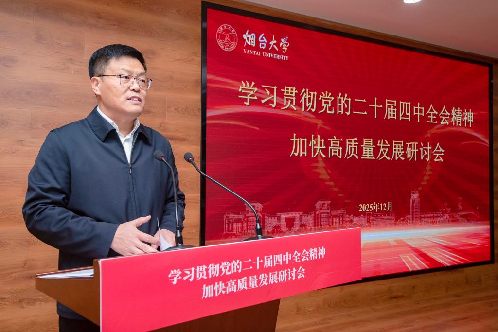 党委副书记、校长郝曙光在讲话中指出,党的二十届四中全会进一步突出了高等教育的功能定位,即国家发展水平和发展潜力的重要标志、国家创新体系建设的重要支撑、推进共同富裕的重要抓手。“十五五”时期,高等教育面临提质扩容、分类发展等关键任务。要正确认识、准确把握发展新阶段新任务,聚焦落实立德树人根本任务,以新观念、新机制、新路径实现新突破。要准确把握高水平大学建设目标,把准学校的办学特色,以及开放创新和提升国内外影响力的实施路径。要强化、提亮学校文理工融合、校城融合、两校援建等固有色,依托烟台万亿级城市发展等背景色,融入以中国式现代化全面推进强国建设、民族复兴伟业等时代色,以个人专长赋能事业发展提质升级等倾向色。要通过走出去开阔视野,走进去改革提质,实现走上更高境界、更高质量、更高水平、更高层次。要统筹谋划好“十五五”时期各领域工作任务,推进各领域改革,推动各项工作高质量发展。他强调,广大领导干部要以深入学习贯彻党的二十届四中全会精神为契机,进一步提高学习力,形成“学习蓄能—加工转化—实践检验—复盘再学习”的良性循环。同时要提高领导力和执行力,健全“闭环落实—高效推进—结果导向”的执行机制,为事业发展提供全方位能力保障。