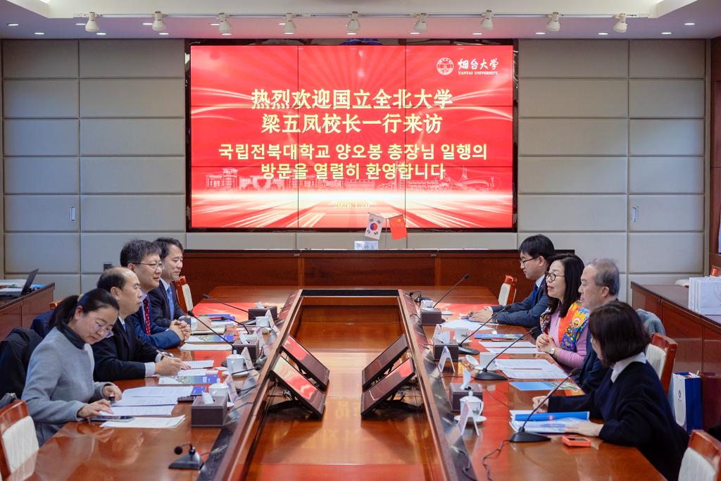 【本站讯】1月20日,韩国国立全北大学校长梁五凤、副校长赵花林一行来校访问,校长郝曙光、副校长王洪波会见客人,国际合作交流处负责人参加活动。