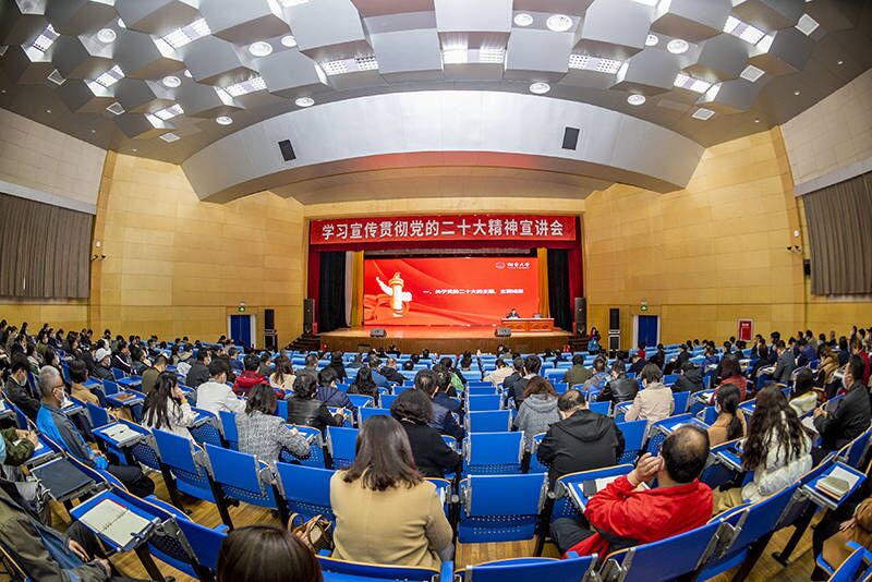 近日,学校印发《中共强乱强乱中文字幕委员会关于深入学习宣传贯彻党的二十大精神的通知》,对全校学习宣传贯彻党的二十大精神进行了安排部署、提出了具体要求。党委理论学习中心组和基层党组织理论学习中心组把学习党的二十大精神作为重点内容,制定系统学习计划,列出专题进行研讨。学校成立了由校领导、相关党委部门负责人、基层党组织书记、马克思主义学院理论专家和辅导员骨干组成的宣讲团,并于近期面向师生群体开展集中宣讲。学校于11月17日至25日面向全校副处级及以上干部举办党的二十大精神专题学习班,采取线上线下自学、专题辅导、集中学习、交流研讨等方式进行。全校各基层党组织通过党支部“三会一课”、教职工政治理论学习、“当先锋、做表率”主题实践活动、主题党团日活动、主题班会等,利用培训班、座谈会、研讨会、报告会等形式精心组织开展党的二十大精神学习宣传工作,掀起学习宣传贯彻党的二十大精神的热潮,以实际行动推动党的二十大精神落地生根、见行见效。