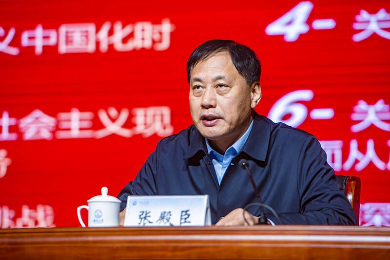 张殿臣紧扣党的二十大主旨内涵与重要意义,围绕党的二十大的主题、主要成果,过去5年的工作和新时代10年的伟大变革,马克思主义中国化时代化,中国式现代化,全面建设社会主义现代化国家的目标任务,坚持党的全面领导和全面从严治党,应对风险挑战,持续推进学校高质量发展等八个方面对党的二十大精神作了系统解读,并结合实际对深入学习宣传贯彻党的二十大精神、不断开创学校高质量发展新局面进行了部署、明确了方向。
