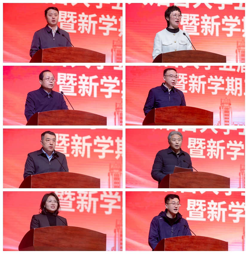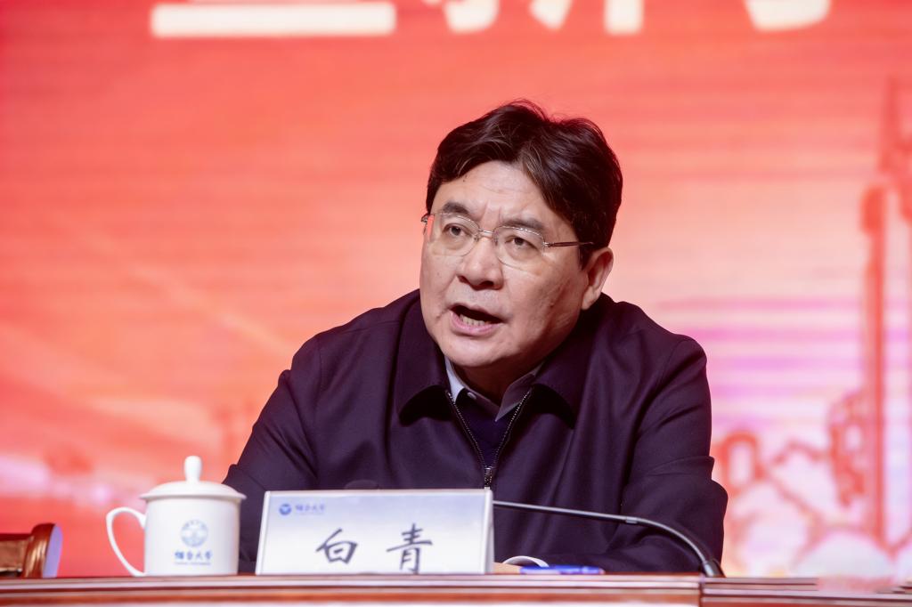 郝曙光回顾了2025学校改革提质年取得的成就,阐述了学校改革发展面临的形势与机遇,提出了2026年工作的主要思路和要求。郝曙光表示,学校党委将2026年确立为“强基筑峰年”,确保在改革提质的基础上,通过一年强基筑峰、三年攻坚突破,五年实现新跨越的发展目标。他强调,抢抓机遇、解放思想,观念在“强”,“强”是推进高水平大学建设的思想统领与精神内核,集中体现为思想引领之强、理念更新之强、责任共识之强;精准施策、固本提质,根本在“基”,“基”是学校为党育人、为国育才的立身之本,其核心要义是全面筑牢安全稳定之基、人才队伍之基、开放合作之基;实干笃行、攻坚突破,关键在“筑”,“筑”是把发展蓝图转化为办学实效的关键纽带,更是以钉钉子精神抓落实、以攻坚克难的劲头勇破局的实践担当;守正创新、争先进位,目的在“峰”,“峰”是学校推进高水平大学建设的峰值目标与发展追求,突出表现在学科建设、人才培养等重点领域,最终指向是推动学校内涵式、高质量发展实现历史性新跨越。